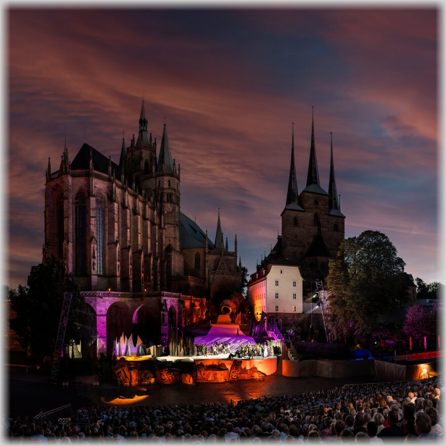 Blick auf den Erfurter Domplatz, im Hintergrund der Dom und die Severikirche